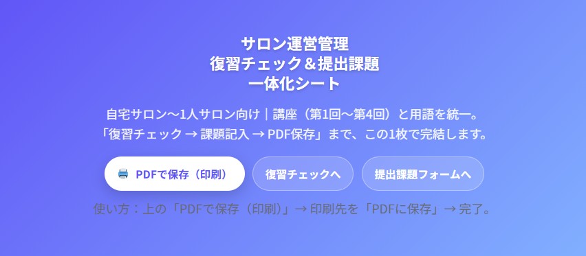保護中: 貴方のサロン運営の型作り チェックシートサロン運営管理|復習チェック&提出課題 一体化シート(第…